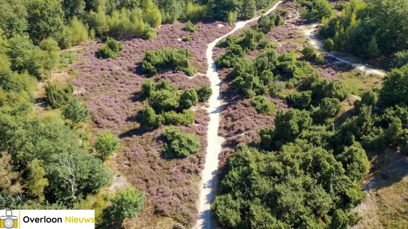 Overloon – De heide tussen Landal De Vers en het Schaartven (de plek van de voormalige uitkijktoren) stond is de afgelopen weken weer volop in bloei. De Overloonse Heide toont zich op dit moment van haar mooiste kant: een uitgestrekt paars landschap dat niet alleen het oog maar ook de neus verwent.