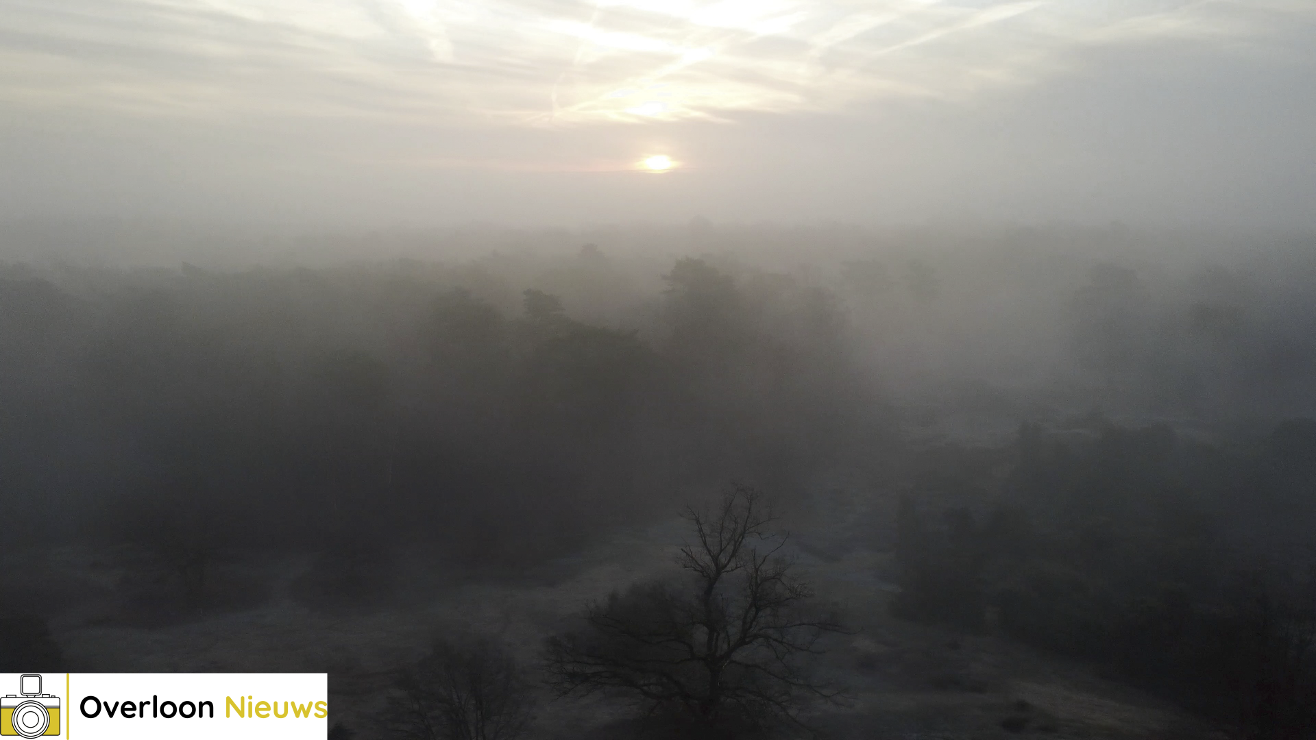 Op zaterdagochtend 20 december 2025 hing er een mysterieuze mist over de Overloonsche Duinen in Overloon. Het uitgestrekte heideterrein werd omhuld door een zachte, grijze sluier, die het landschap een bijna sprookjesachtige uitstraling gaf. De stilte van de vroege ochtend werd versterkt door de nevel, terwijl de contouren van struiken en bomen langzaam zichtbaar werden.