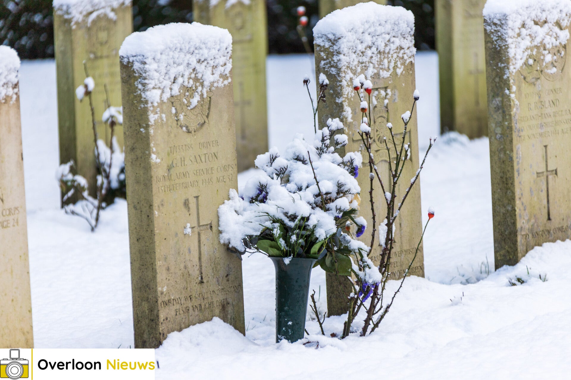 Het War Cemetery in Overloon is een belangrijke herdenkingsplaats waar jaarlijks vele bezoekers stilstaan bij de offers die tijdens de Tweede Wereldoorlog zijn gebracht. De winterse omstandigheden maakten dit moment van bezinning extra indrukwekkend.