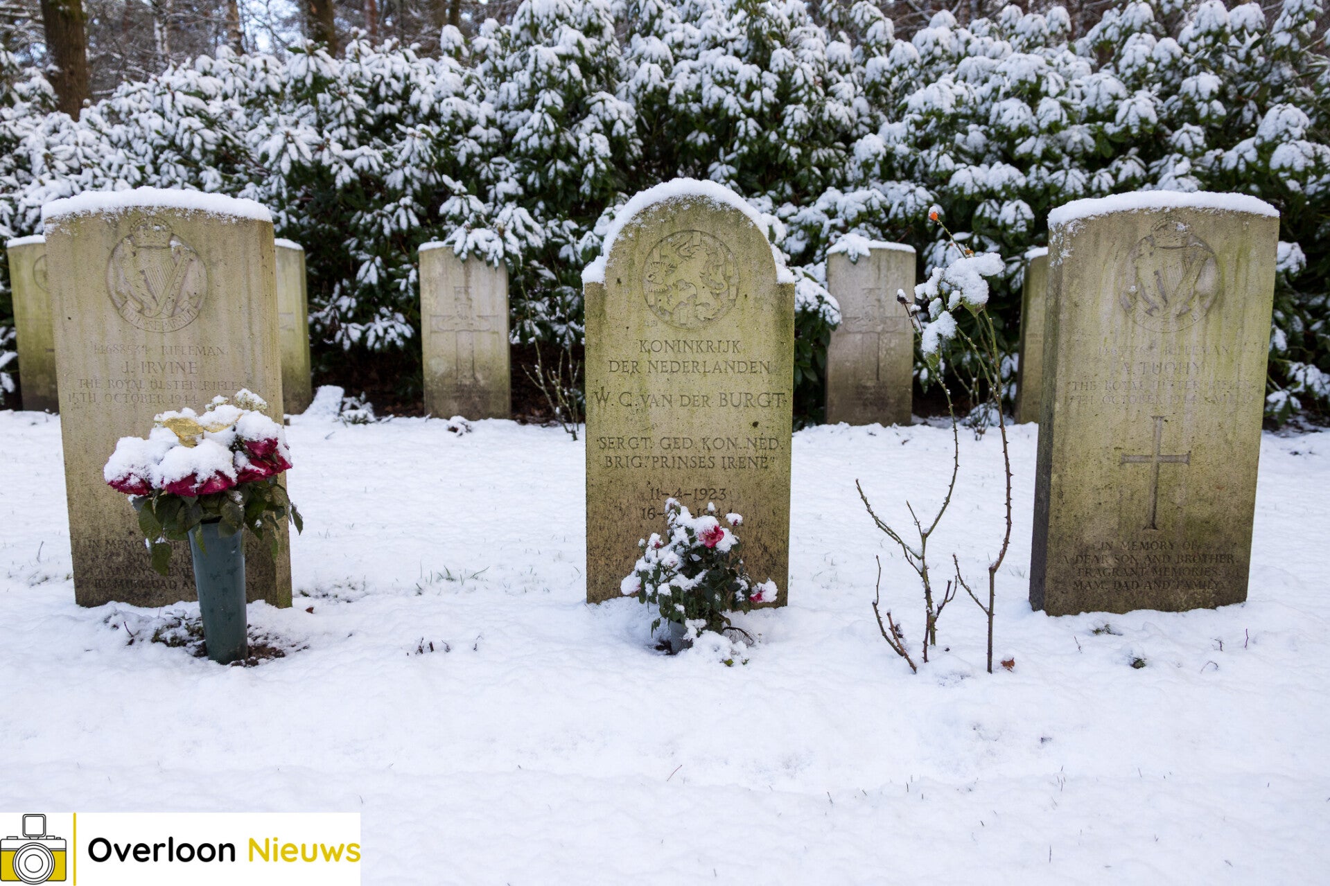 De graven van de geallieerde militairen lagen er vredig bij, omringd door een winters landschap. De sneeuw zorgde voor een ingetogen sfeer die extra benadrukte dat deze plek in het teken staat van herdenken en respect.