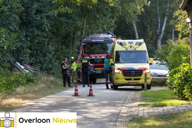 Een auto is woensdagavond om 17:50 uur op zijn kant beland nadat de bestuurder een lantaarnpaal raakte. Het ongeluk gebeurde op de Vredepeelweg in Overloon. De bestuurder van de auto raakte niet gewond.