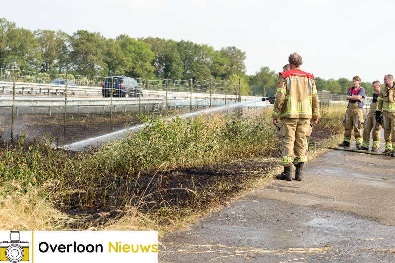 Foto Bermbrand op de A73 op de grens van Brabant en Limburg, ter hoogte van Overloon. Ook daar was het kurkdroog