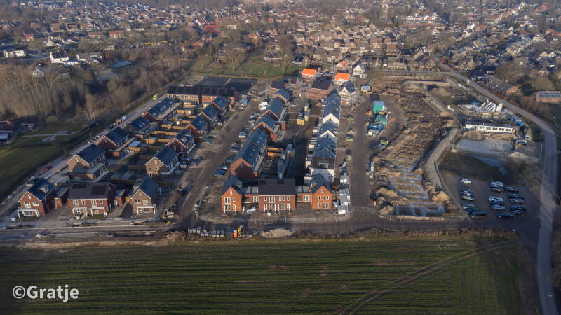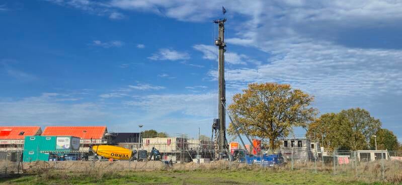 De woningbouw aan de Helderseweg in Overloon loopt een week of zes vertraging op. Oorzaak is de hoge grondwaterstand.