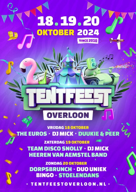 Dit is niet alleen een feest voor de jeugd, maar voor alle generaties. Iedereen uit Overloon en de omliggende regio die zin heeft in een feestje is van harte welkom. Wil je op de hoogte blijven van de laatste updates en de line-up? Volg dan de socialemediakanalen of kijk op www.tentfeestoverloon.nl en www.facebook.com/TentfeestOverloon of op Instagram www.instagram.com/tentfeestoverloon Tentfeest Overloon. Tot ziens op Tentfeest Overloon 2024!