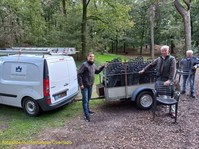 Het Openluchttheater Overloon werd onlangs aangenaam verrast door een prachtig cadeau van Grand Café Broer & Zus in Overloon. Het café schonk aan het theater een volledige aanhanger vol nieuwe, mooie terrasstoelen en drie buitentafels.