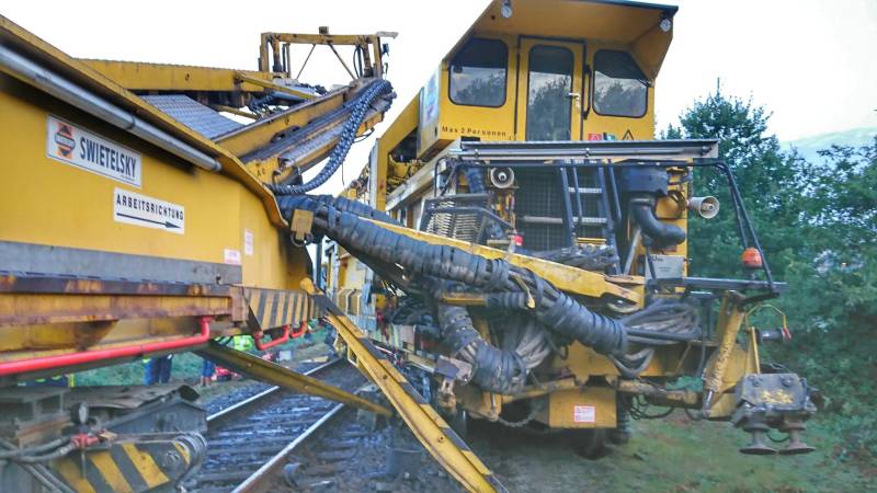 bron foto's prorail Werktrein bij Venray is naast het spoor terecht gekomen