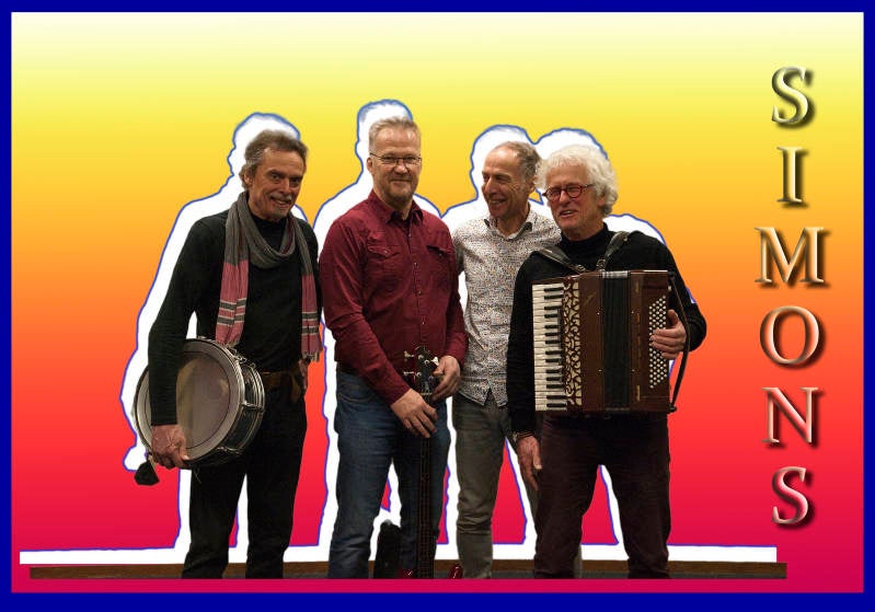 Muziekgroep Simons bestaat uit vier ervaren muzikanten, die spelen op (slide) gitaar, basgitaar, mondharmonica, toetsen, accordeon, doedelzak en percussie.