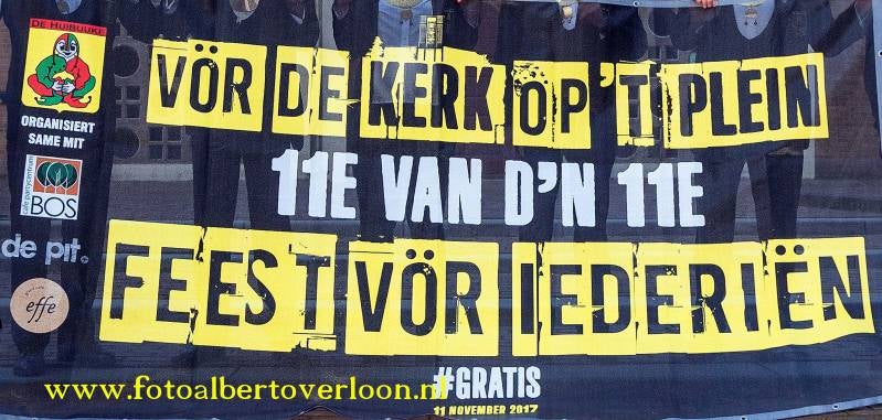 Het elfde van de elfde-feest duurt de hele middag en is rond 18.00 uur afgelopen. Het plein voor de kerk en De Pit wordt omgetoverd tot feestloctatie met bars, eettenten en foodtrucks. Von der Heide: "Een overkapping is geen haalbare kaart. Natuurlijk wordt de zaak feestelijk aangekleed. De bouwploeg is al volop in de weer. Hoe de opening precies eruit gaat zien, is nog geheim. Wel komt om 14.00 uur ook de nieuwe Huibuuke-prins uit. Het moet ook een feest worden van onderlinge verbinding, tussen de clubs bijvoorbeeld. Dat staat bij ons hoog in het vaandel."