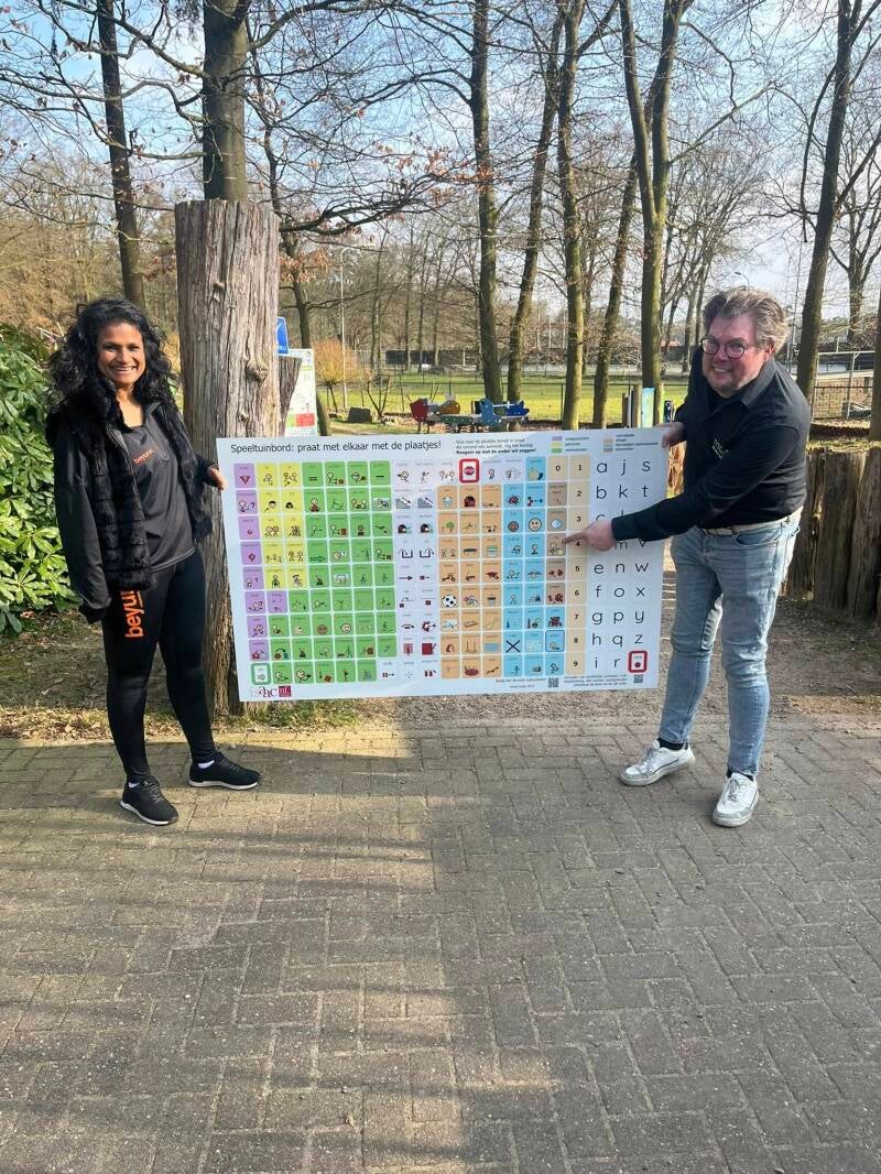 Dus samen met de ouders van het oudercafé van de samenspeeldagen hierover gespard, want er komen steeds meer scholen/instellingen met kinderen met een rugzak de speeltuin bezoeken. Ik heb contact met NSGK/stg het gehandicapte kind gezocht en onlangs een financieel akkoord gekregen voor het laten ontwikkelen van deze communicatieborden. Vervolgens contact gezocht met Ton van Raaij van Maay die dit wel even gefixt heeft. De borden zijn al aanwezig en zijn op het moment van plaatsing van dit nieuwsbericht al geplaatst in de speeltuin.