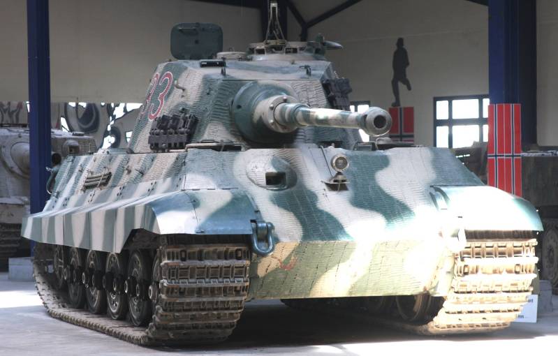 De foto toont de Königstiger in het Franse tankmuseum (het Musée des Blindés, gevestigd in Saumur). Foto gemaakt door het Oorlogsmuseum Overloon.