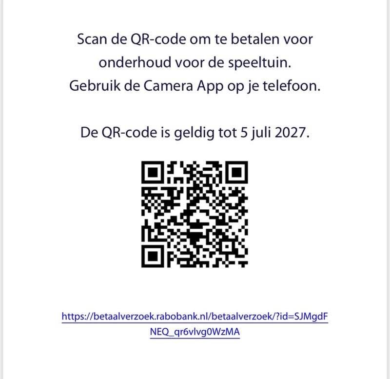 Jij kunt een donatie doen via onze website www.speeltuingewoonbuitenoverloon.nl, via de QR die te vinden is op het bord bij de slak in de speeltuin, waar ook muntjes gedoneerd kunnen worden in de slak en/of kun jij een leuk bedrag overmaken op ons rekeningnummer.