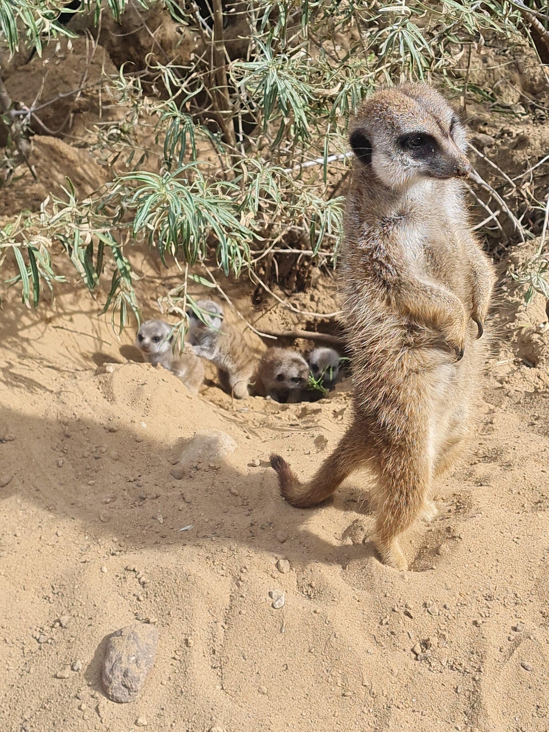 Nu de jongen uit het hol zijn gekropen, gaan ze stap voor stap hun leefomgeving ontdekken. Wel zullen ze ook nog regelmatig ondergronds verblijven. Het viertal drinkt nog bij de moeder en het geslacht is nog niet bekend. Kronier: "We laten ze de eerste tijd zoveel mogelijk met rust, zodat ze rustig het verblijf kunnen verkennen. Over een tijdje kunnen we het geslacht vaststellen."