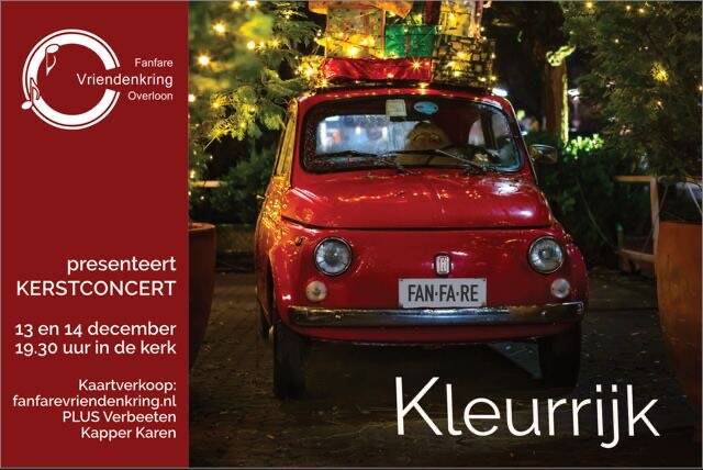 Op zaterdag 13 en zondag 14 december organiseert Fanfare Vriendenkring weer een groots en prachtig kerstconcert ‘Kleurrijk’ in de kerk!