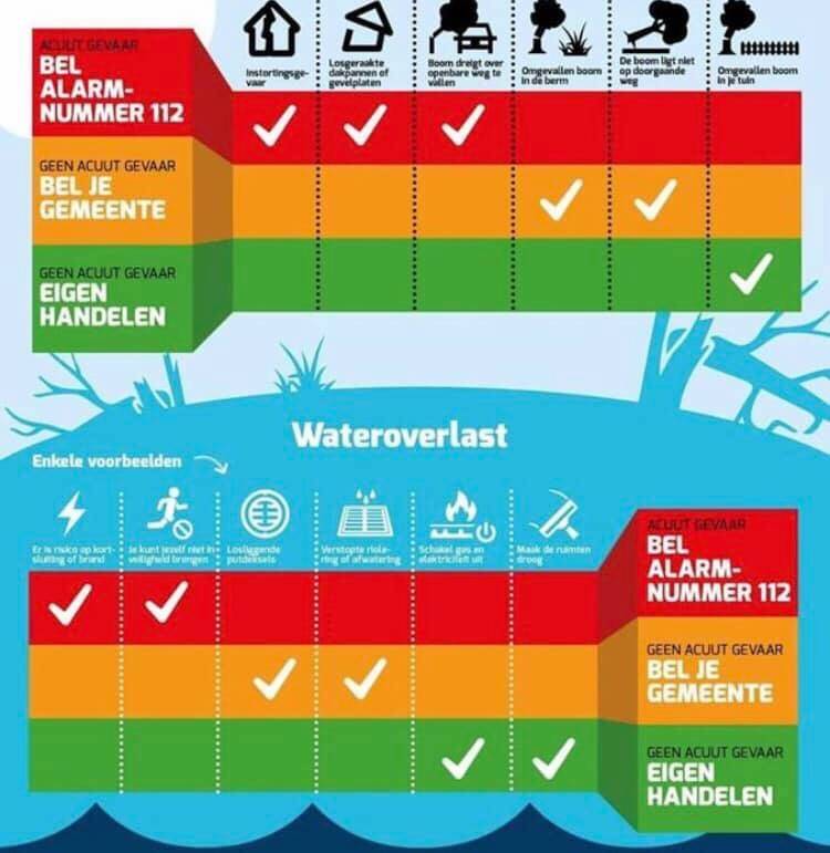 Weet u wat u moet doen als er bijv een boom dreigt om te vallen? Wie u moet bellen staat hieronder vermeld!