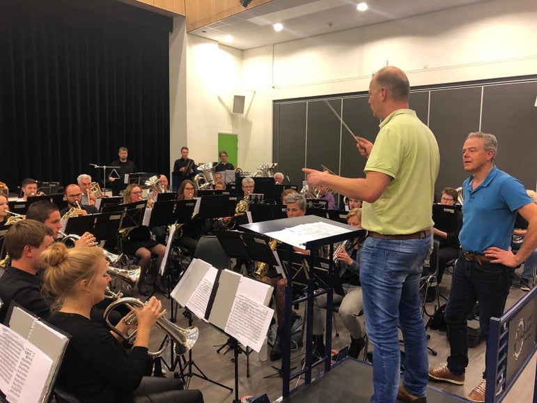 Hans Teunissen keek en luisterde met heel andere ogen naar het kerstconcert het afgelopen jaar als voorbereiding op Maestro 2019! Hans, de welbekende fysiotherapeut met zijn eigen praktijk aan de Bergkamp, leert nu de kneepjes van een totaal ander vak: dat van dirigent! Hoewel Hans in het dagelijks leven gericht met zijn handen werkt, zijn we erg benieuwd hoe dit eruit zal zien met de welbekende baton in zijn handen!