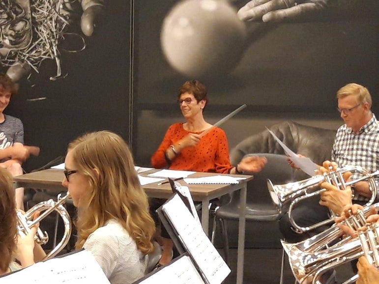 Jeanne Willems-Vloet, ‘schrijf gewoon Jeanne Vloet, zo kennen ze me!’. Jeanne zal nu de fanfare ‘voor gaan’ als Maestro. Lang hoefde Jeanne niet na te denken op het aanbod van de fanfare: ‘Ik hou van muziek en ik hou van het dorp’ vertelde ze ons. Ze zal vast en zeker met dezelfde aandacht dirigeren zoals we van haar gewend zijn! Wil je Jeanne in deze unieke rol zien? Kom dan kijken en luisteren! En