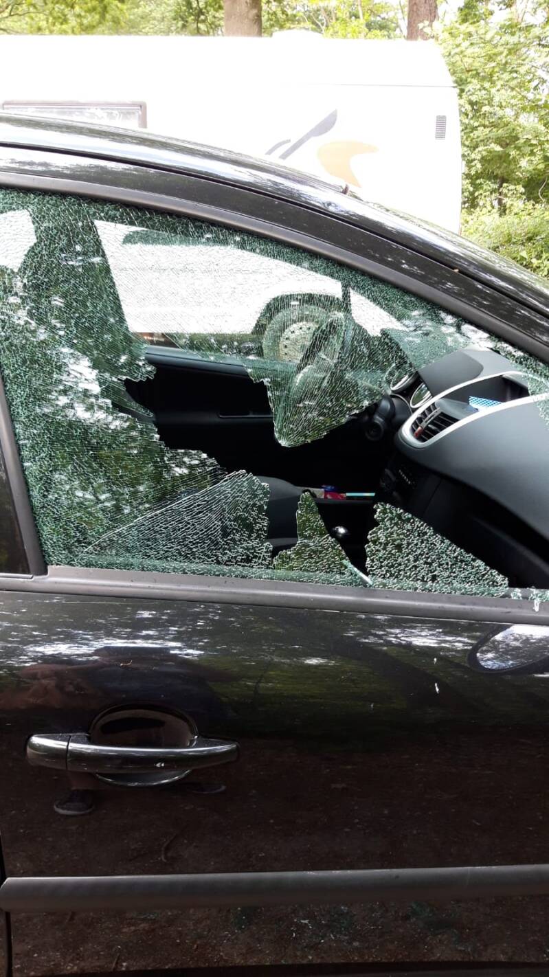 Overloon - Van een auto die geparkeerd stond bij de Helderse Duinen (ingang 3) in Overloon, is vrijdagmorgen 24 mei de Zijruit kapotgeslagen