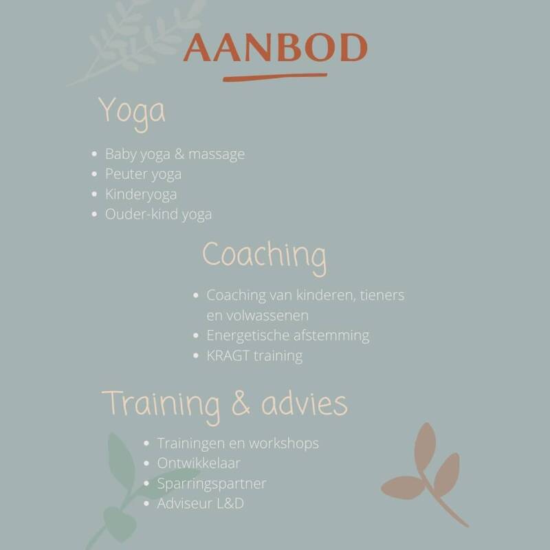Praktijk voor kinderyoga & (kinder)coaching, training & advies Mijn missie: Jong en oud ondersteunen om het (weer) fijn te hebben met zichzelf en met anderen.