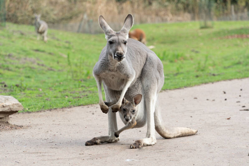 In de buidels van drie rode reuzenkangoeroes zijn recent ‘joey's’ gezien: een jong dat inmiddels een paar maanden oud is, maar nog niet uit de buidel komt. “Pasgeboren kangoeroes zijn heel erg klein. Ze kruipen direct na de geboorte in de buidel om daar verder te groeien. Pas na een paar maanden steken ze hun koppies boven de buidel uit en weten we dat ze er zijn. Het duurt vervolgens nog eventjes voordat de jongen uit de buidel komen”, aldus Van den Heuvel.