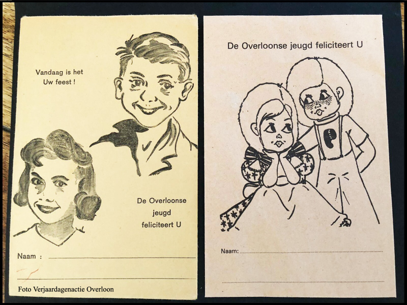 We spraken Annet van Dijck: “Het klopt dat ik ergens begin jaren '70 een tekening gemaakt heb voor op het zakje van de verjaardagenactie. Toen was er al een ontwerp, inderdaad gemaakt door Meester Mike Mooren van de jongensschool. Die kon fantastisch tekenen. Ik heb nog een handgetekende geboortefelicitatie van hem in mijn fotoalbum, van toen ik geboren ben.”