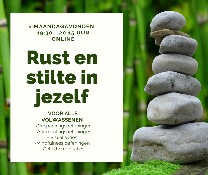 Tijdens deze online avonden bied ik verschillende vormen aan om rust en stilte in jezelf te gaan ervaren. Denk hierbij aan: Ontspanningsoefeningen,