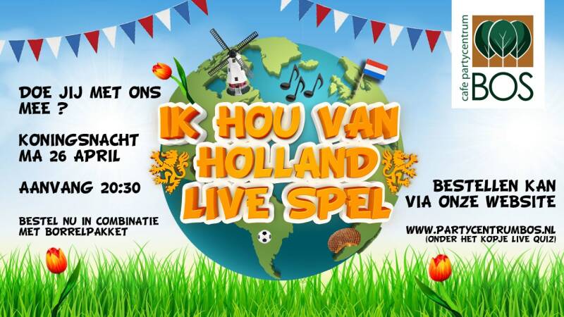 Maandag 26 april tijdens Koningsnacht hebben we het Ik Hou van Holland Live Spel.