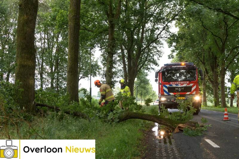 Overloon – Een grote tak is donderdagavond van een boom afgebroken en op de weg en op het fietspad gevallen.