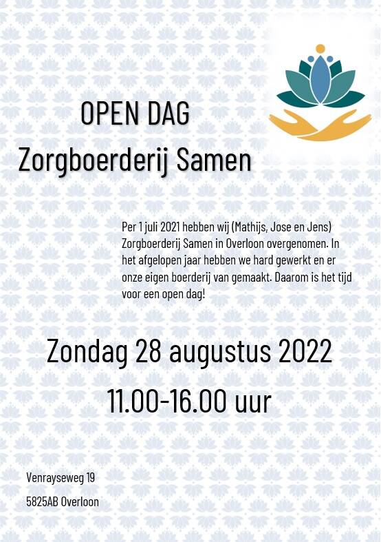 meer informatie vind je op Zorgboerderij Samen https://zorgboerderijsamen.nl/ Facebook https://nl-nl.facebook.com/zorgboerderijsamenoverloon/