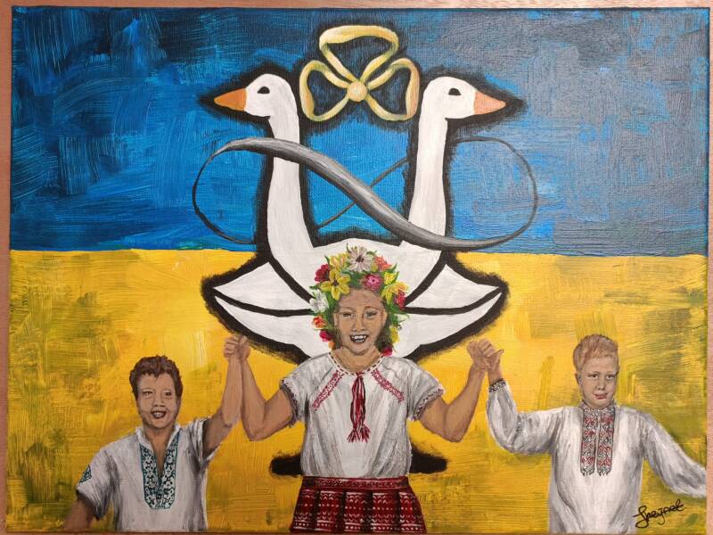 Om dat te onderstrepen heeft onze burgemeester een kunstwerkje overhandigd aan een vertegenwoordiging van de dorpsraad. Het werk staat symbool voor de band die Linden heeft met Oekraïne. Het infinity teken (het teken dat symbool staat voor oneindigheid) onderstreept dit. We zien de Oekraïense vlag, het wapen van Linden, de ganzen en drie kinderen in traditionele dracht. Zie foto. Het was een mooie bijeenkomst. Vanuit het dorp was een speciaal woord van dank aan Johan van de Boom. Johan was de juiste verbinding tussen de gemeente en de vrijwilligers van Linden.