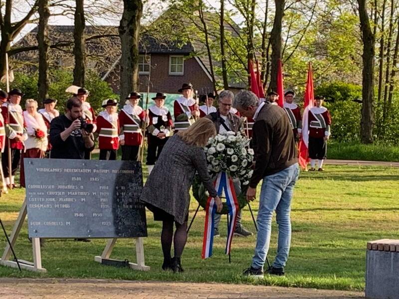 Toespraak en kranslegging door burgemeester Marieke Moorman in het park aan de Pater Eijmardstraat in Stevensbeek.