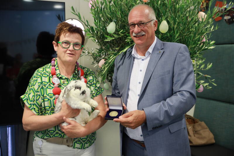 Vorige week ontving mevrouw Berry Geurts uit Boxmeer de Dorpspenning Land van Cuijk. Dit als blijk van waardering voor haar jarenlange en vrijwillige verdiensten voor de kinderafdeling van het Maasziekenhuis in Beugen. Deze gemeentelijke onderscheiding werd haar uitgereikt door wethouder Maarten Jilisen tijdens haar afscheid van de kinderafdeling van het Maasziekenhuis.