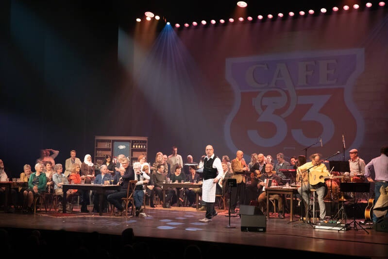 Naast de Nieuwjaarstoespraak van burgemeester Marieke Moorman, kreeg het aanwezige publiek ook een preview voorgeschoteld van de afstudeermusical “Hoera! Wij schamen ons!”. Deze musical – die officieel pas op 25 mei in première gaat – wordt geregisseerd door oud-leerling Daphne Croes en uitgevoerd door leerlingen van de Musicalschool Étoile uit Boxmeer. Verder waren 33 speciale gasten uit Land van Cuijk uitgenodigd om plaats te nemen in het geïmproviseerde “Café 33”. Elk van deze gasten was direct betrokken geweest bij één van de kennismakingsbezoekjes die burgemeester Moorman onder de noemer “Route 33” het afgelopen jaar bracht aan alle kernen van de gemeente Land van Cuijk. Daarmee hebben deze mensen het jaar 2023 mede gemaakt tot wat het is geworden. Onder begeleiding van de band Ochtendvoer uit Oploo werden deze toppers nog één keer in het licht gezet en bedankt voor hun inzet. Op naar een mooi 2024!