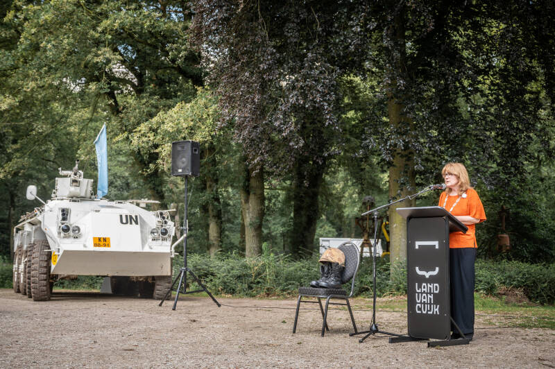 Zaterdag 22 juni waren ruim 200 veteranen, hun partners en kinderen aanwezig bij de Veteranendag Land van Cuijk. De bijeenkomst – gehouden in en bij de grote militaire tent op het terrein van het Oorlogsmuseum in Overloon – begon met een appèl, het spelen van de Last Post, het Wilhelmus en enkele toespraken. Burgemeester Marieke Moorman sprak onder andere haar waardering uit voor de inzet van onze veteranen: “Vandaag eren we u; onze veteranen. Vandaag bedanken we u voor het verdedigen van onze vrijheid en het voorbeeld dat u voor ons bent. Het feit dat wij hier vandaag bij elkaar zijn, laat zien dat uw inzet en moed met dankbaarheid worden erkend en gewaardeerd”. Na toespraken van Commodore Marcel van Egmond – Commandant Air Combat Command Koninklijke Luchtmacht – en aalmoezenier Sanneke Brouwers, was er een gezellig samenzijn van veteranen onder elkaar, met muzikale ondersteuning van het Vrijwillig Fanfarekorps der Genie. Alle veteranen ontvingen een Land van Cuijk-herinneringscoin. Daarnaast konden de aanwezigen bij enkele stands informatie krijgen van onder andere Hulphond Nederland en het Veteraneninstituut. De dag werd afgesloten met een gezamenlijke maaltijd. Wilt u als veteraan op de hoogte blijven of meewerken aan de (oprichting van) de Vereniging Veteranen Land van Cuijk? Stuur dan een e-mail naar veteranenlvc@gmail.com.