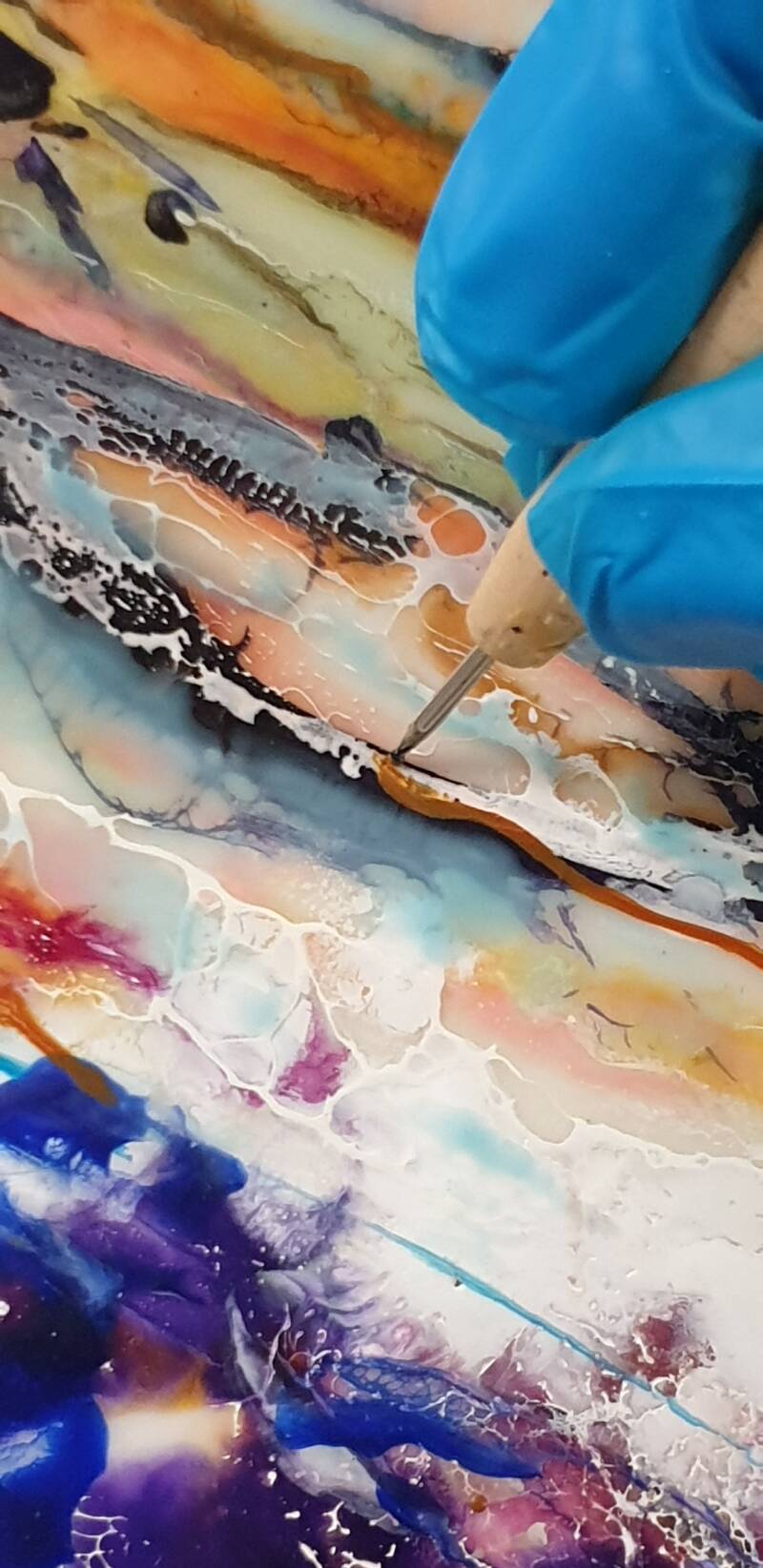 In haar presentatie deelt Vera niet alleen haar techniek, maar ook de diepere betekenis achter haar werk en hoe kunst kan helpen bij verwerking bij rouw, verlies en persoonlijke groei.