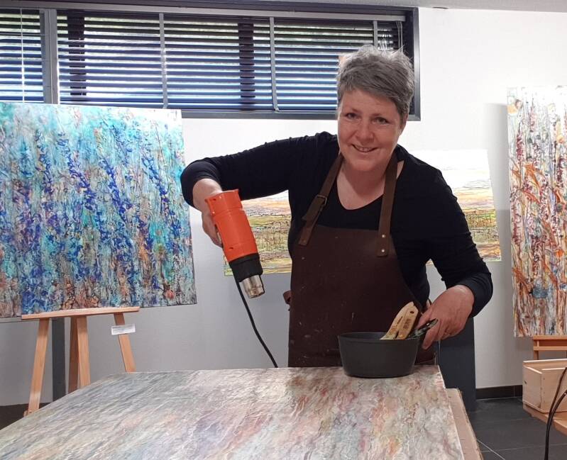Kunstenares Nicole neemt u mee in haar unieke werkwijze en inspiratiebron: de natuur zelf. Vanuit haar atelier in Gemert werkt zij met de eeuwenoude techniek van encaustic art, waarbij bijenwas, pigmenten en natuurlijke materialen samenkomen tot gelaagde en poëtische kunstwerken. Riet speelt hierin een terugkerende rol, vanwege het vloeiende lijnenspel en de serene sfeer die het oproept. Nicole laat zien hoe zij niet alleen de uiterlijke vormen van de natuur vastlegt, maar vooral de emotie en essentie ervan probeert over te brengen. Haar werken zijn een eerbetoon aan zowel harmonie als imperfectie, en weerspiegelen haar diepe verbondenheid met het natuurlijke landschap.
