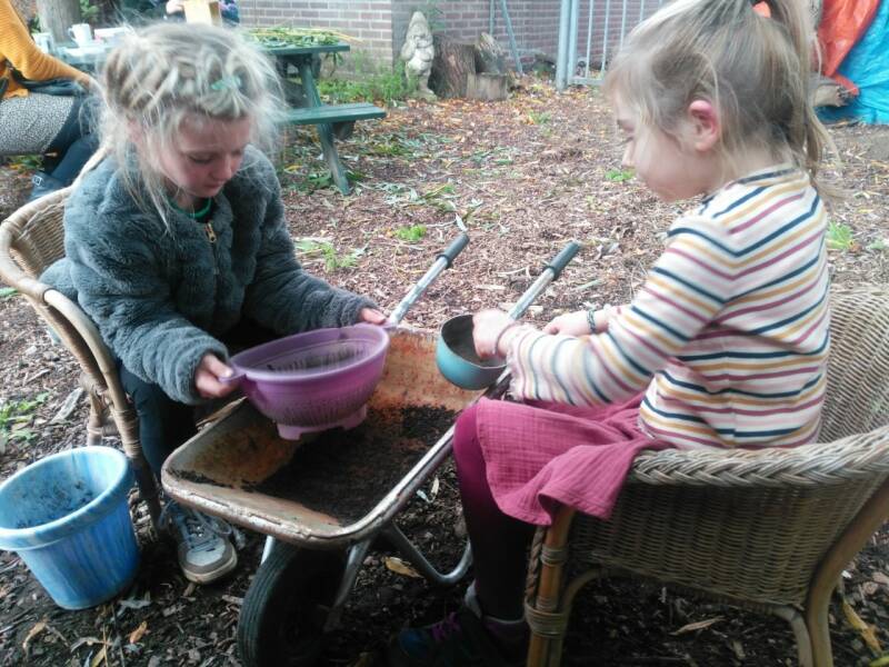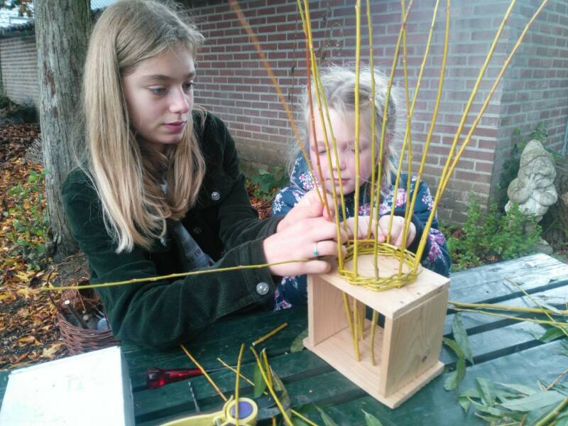 Deze donderdagmiddag werd daar dankbaar gebruik van gemaakt door Faren en Nova van Lieshout alsmede Pam Hubertus, 2 moeders en dochter Zij vlochten met wilgentenen twee vogelvoedermandjes en er werden vele muizenbotjes gevonden in braakballen van steen- en kerkuil In de keuken werd "gekookt" en de compost werd gezeefd Deze vakantiedag zal zeker een vervolg krijgen met nog meer creatieve natuuractiviteiten voor meer kinderen in een gezellige thuissituatie