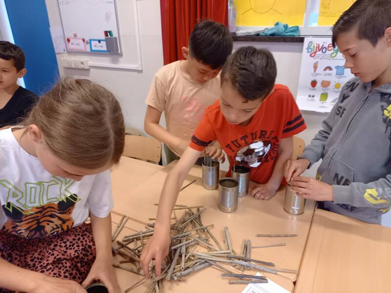 Basisschool P. Eymard in Stevensbeek organiseerde voor de leerlingen van groep 3, 4, 5, 6, een workshop Insectenhotel maken.